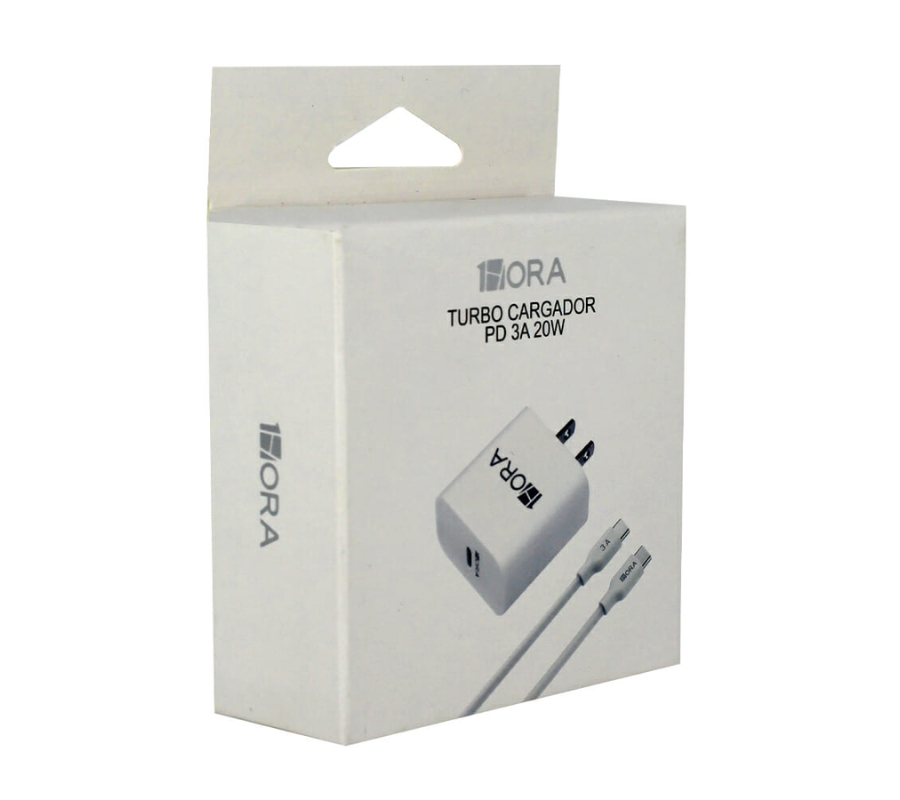 Cargador de Pared 2 en 1 1HORA GAR153, Cubo 1 pto: USB C, 20W, 3.A, Cable USB-C a USB-C, Blanco