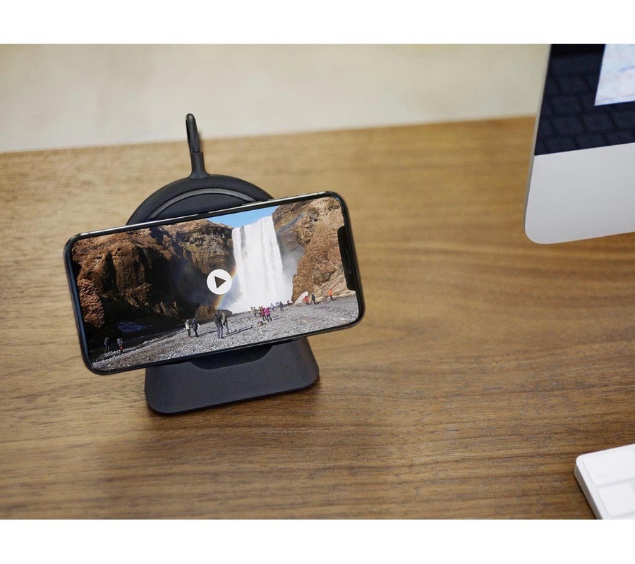 Las superficies de goma sostienen tu smartphone de manera segura mientras se carga y evita que sufra rayadura y el soporte de carga para escritorio mantiene tu celular en un ángulo que permite verlo cómodamente mientras los cargas. El magneto incluido permite mantener el cable USB en orden.