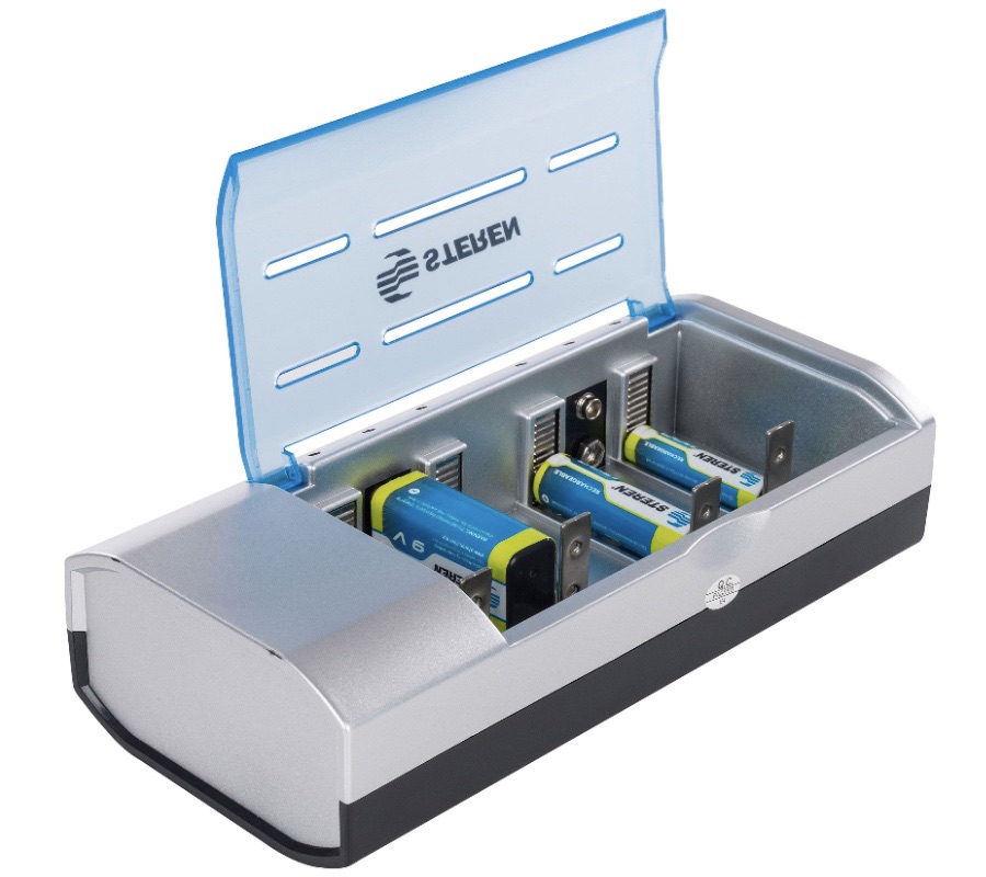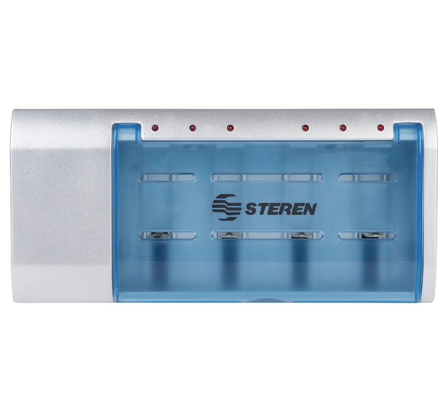 Cargador Universal de Baterias STEREN CRG-500, AA/AAA/C/D/9V, Gris