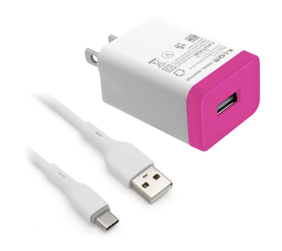 Cargador USB + Cable de Datos USB-Tipo C 2 en 1 KCOM - 1.5A, Blanco/Rosa