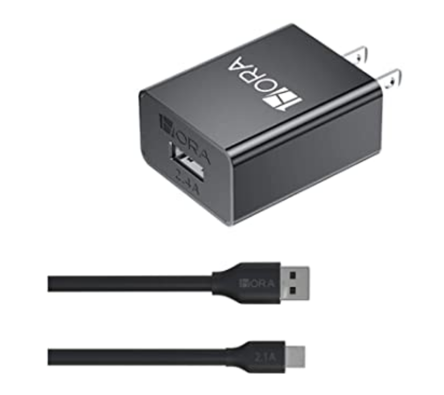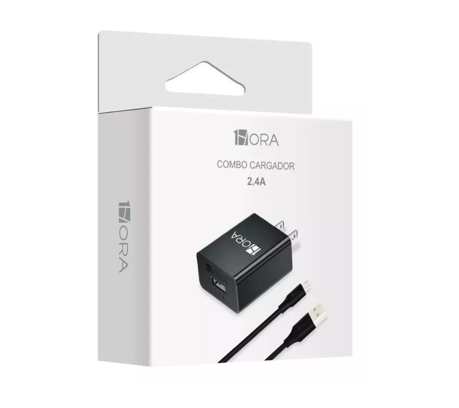 Combo Cargador de Pared 1 puerto USB a V8 Micro USB 1HORA GAR124, 2.4A Cable + Cargador, Negro