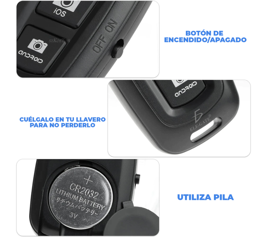 Control Remoto Disparador de Foto ELE-GATE ZP.08 Bluetooth 4.0 para Android/IOS, Negro