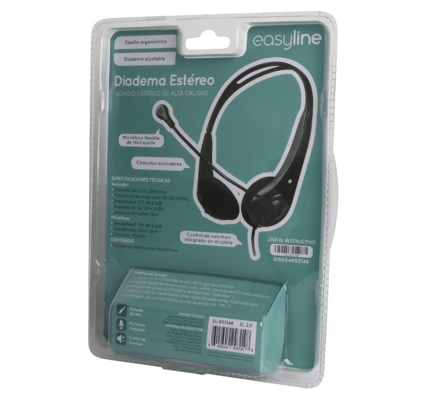 Diadema alámbrica EASYLINE EL-993148 Micrófono, 3.5mm Negro