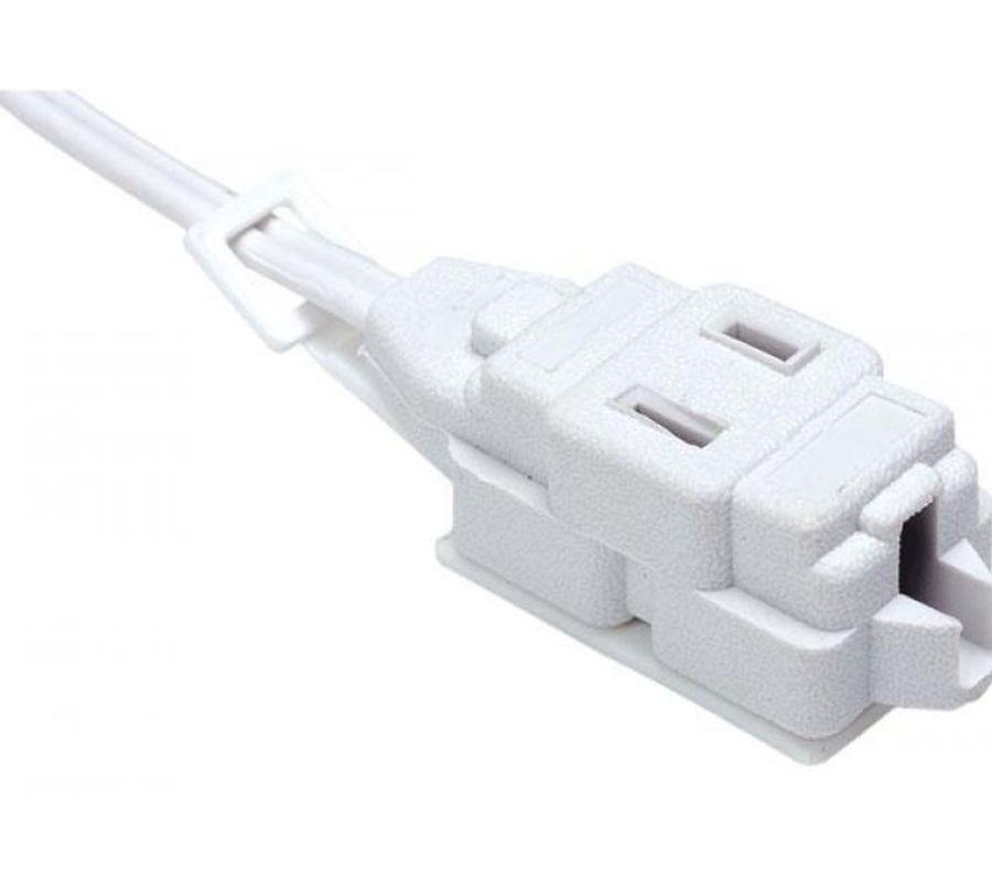 Extensión de 3 contactos, de 4 m de largo, con cable de 2 x 16 AWG tipo SPT-2 y acabado en color blanco.