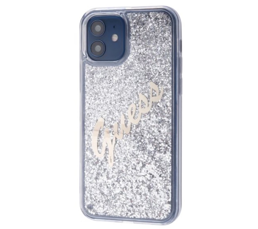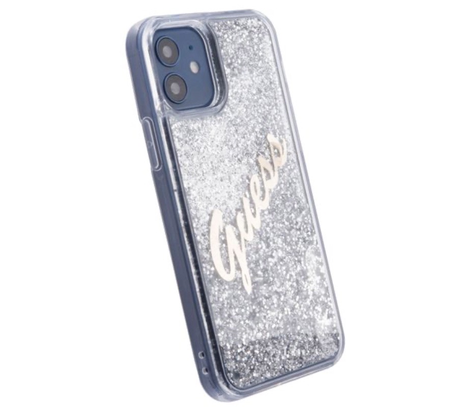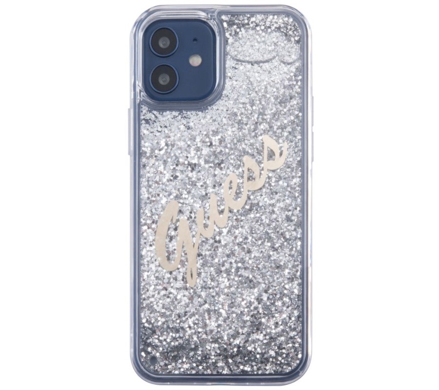 Funda GUESS Liquid Glitter Silver Brillos para IPHONE 12/12 PRO/6.1, Transparente/Plata
