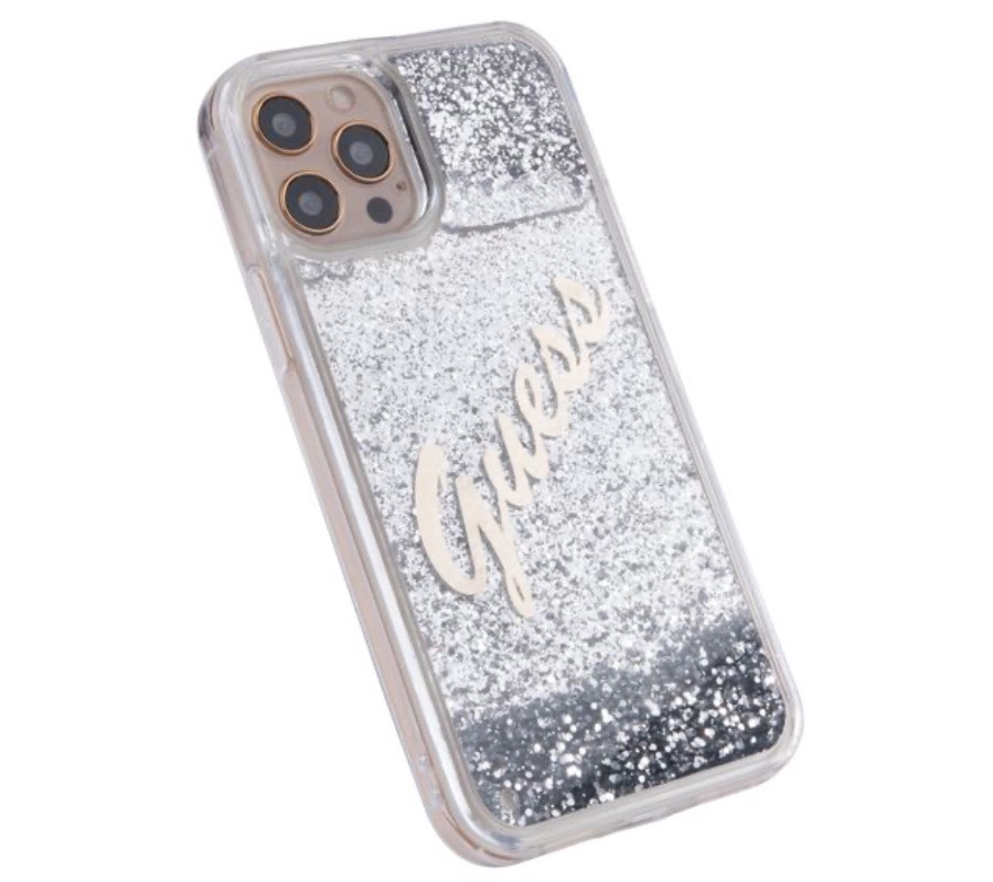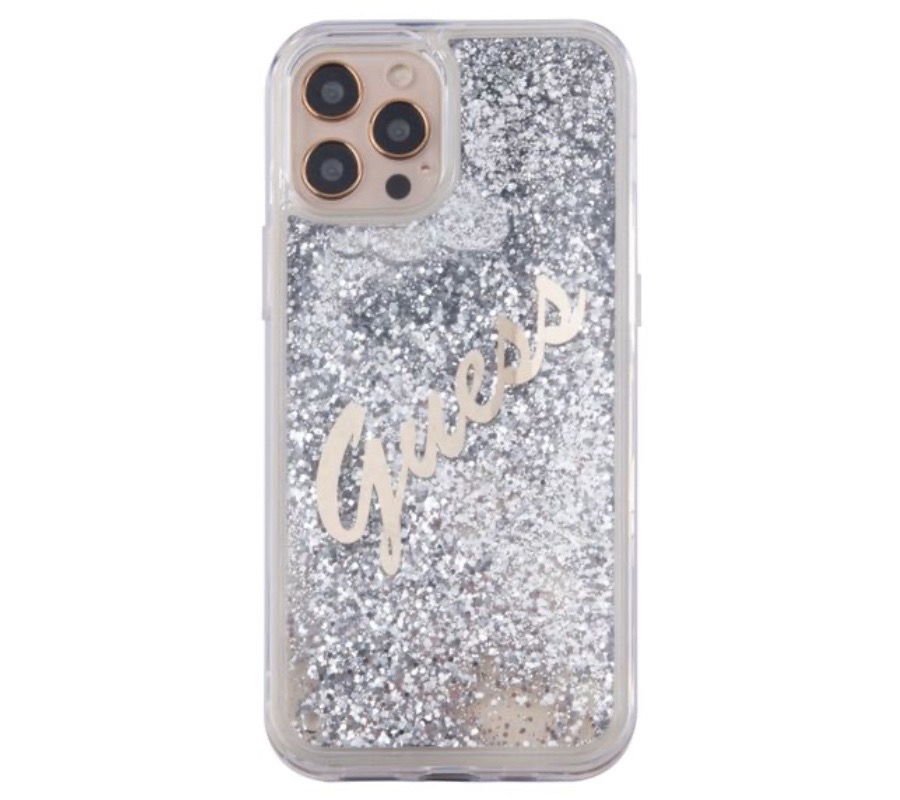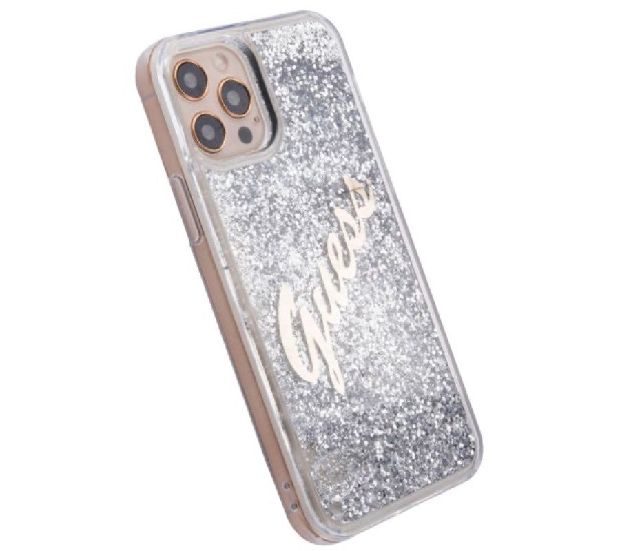 Funda GUESS Liquid Glitter Silver Brillos para IPHONE 12 PRO MAX/6.7