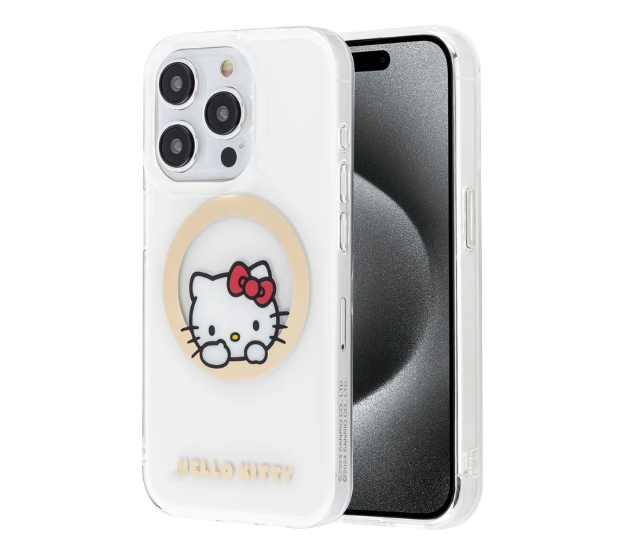 Funda HELLO KITTY LICENCIA MAGSAFE para IPHONE 15 PRO, Blanco/Dorado