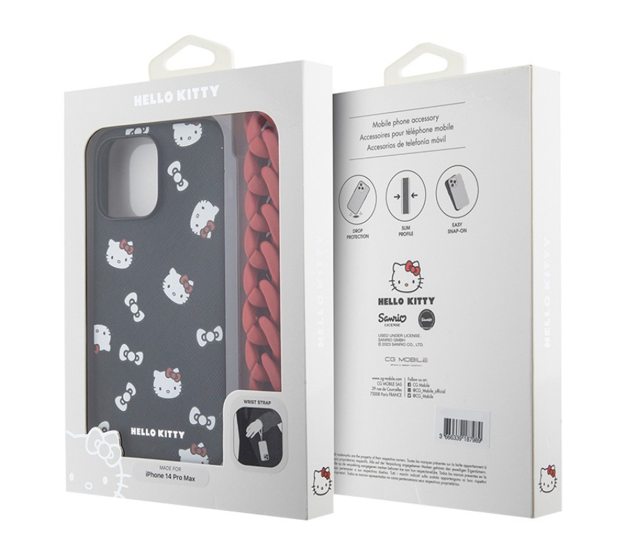 Funda HELLO KITTY LICENCIA WRIST STRAPE para IPHONE 14 PRO MAX, Negro