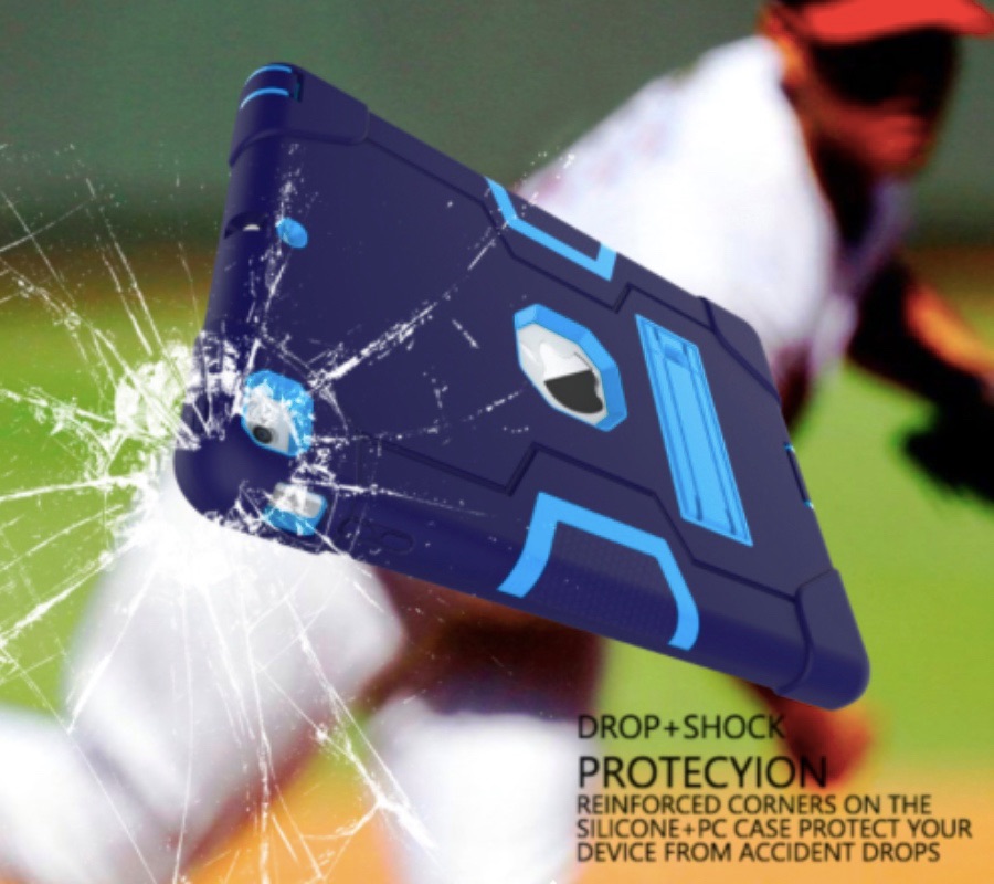 Color Silicone + PC Funda combinada con soporte Azul marino/Azul cielo