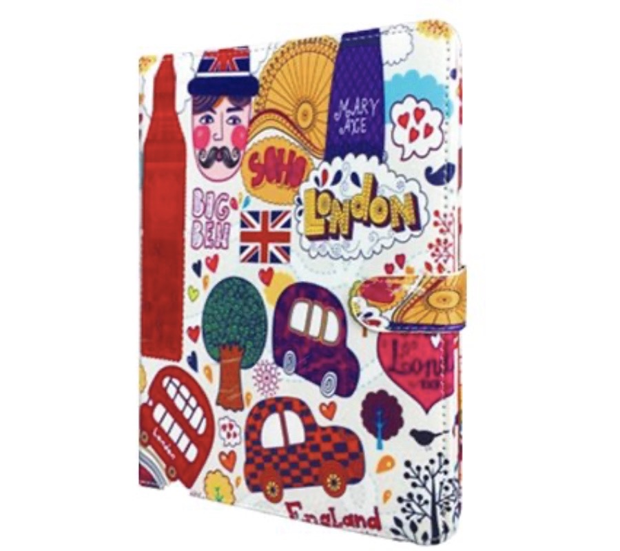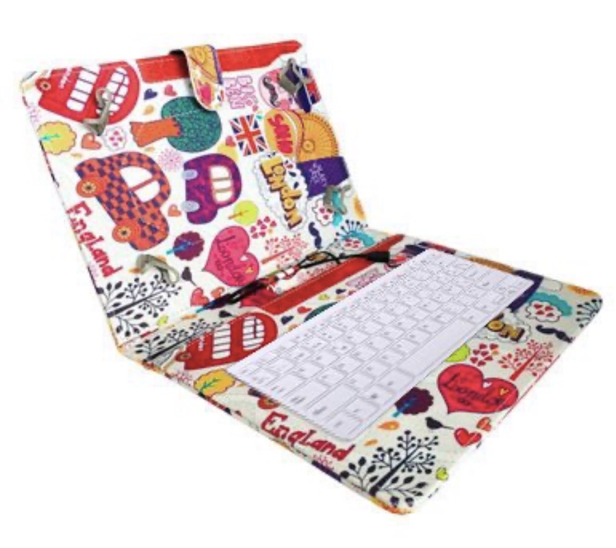 Funda para Tablet BROBOTIX CARPETA Teclado Diseño Londres para UNIVERSAL 7/001635L, Blanco/Colores
