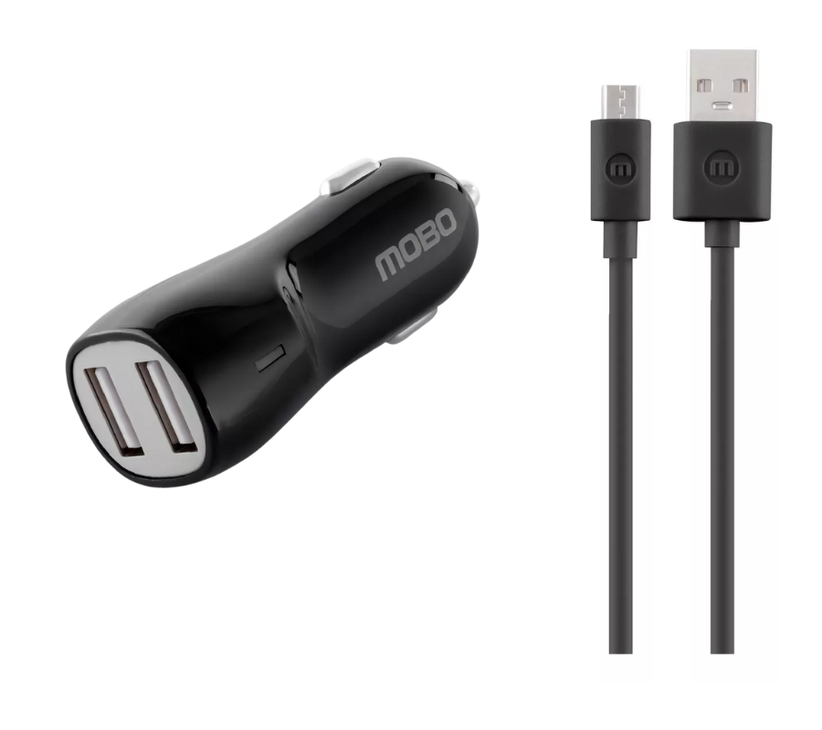 Carga rápida para tus dispositivos con el cargador de Auto y el cable Micro USB de MOBO