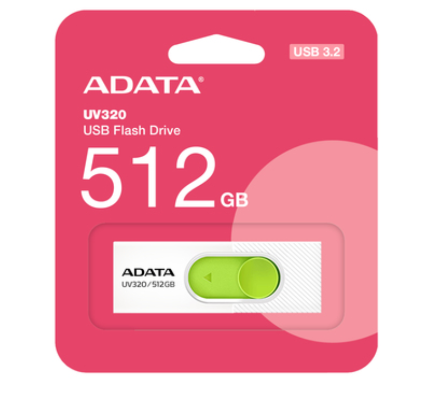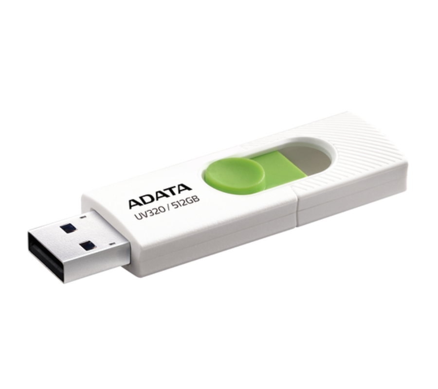 Memoria USB Adata UV320, 512GB, USB 3.1, Lectura 100MB/s, Blanco/Verde