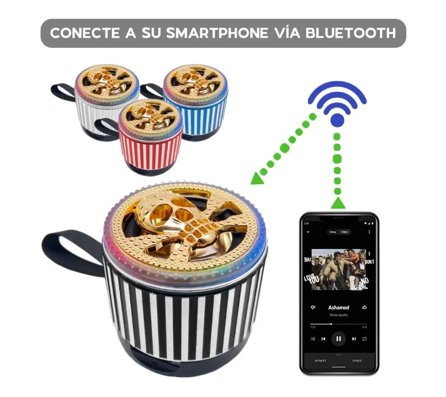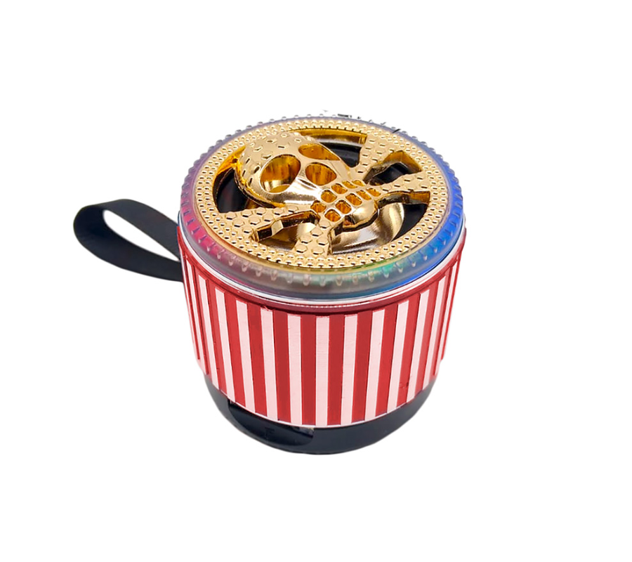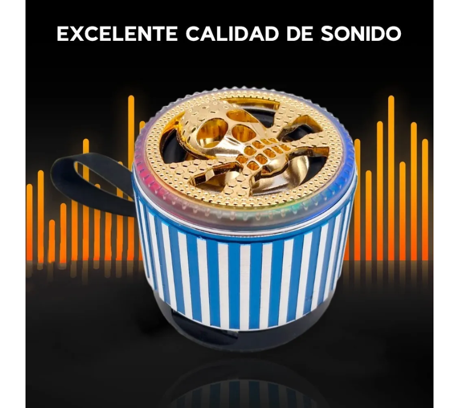 Mini Bocina Portable Bluetooth MAIZ BC-395 Mini Speaker Calavera, Dorado/Rojo