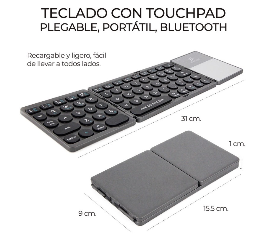 Teclado Inalámbrico Bluetooth Plegable Recargable Con Touchpad