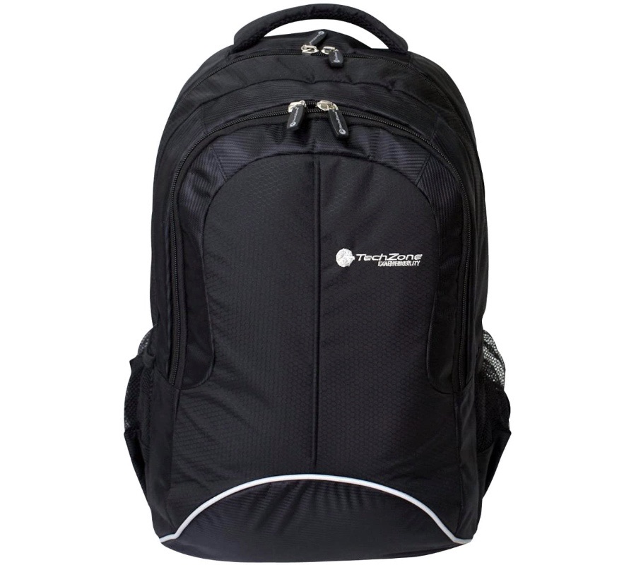 Todo a la Mano Lleve todos los elementos esenciales con esta Backpack TechZone que cuenta con compartimiento acolchado para laptops hasta 15.6. Tiene un bolsillo oculto con cierre para acomodar accesorios y una base impermeable y resistente de máxima protección para los elementos interiores. Bolsillos frontales con cierre.