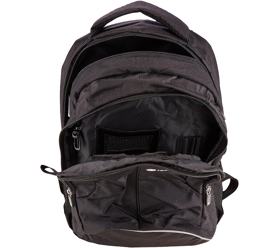 Espacio para las llevar elementos necesarios como lapiceros, tarjetas de presentación, memorias entre otros, está preparada para llevar alta carga con máxima comodidad mediante correas con tensores elásticos y fuertemente acolchados. Incluye un soporte para botellas de agua retráctil.