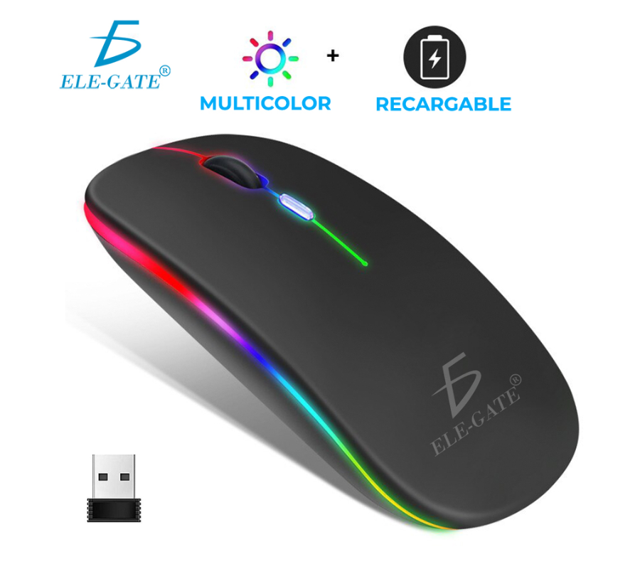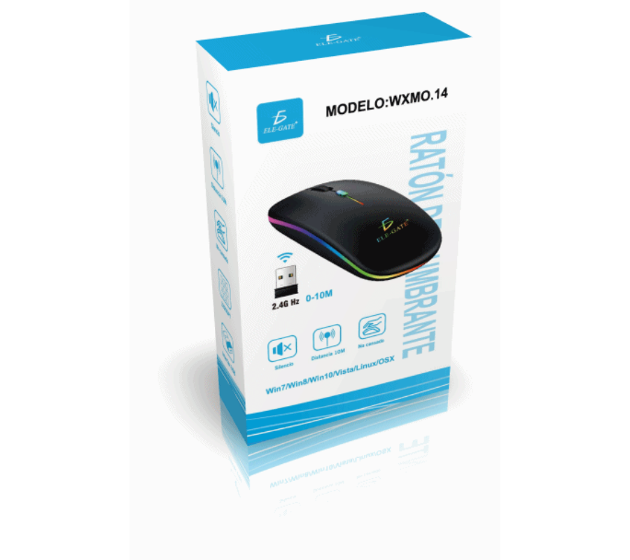 Mouse Inalámbrico Recargable ELE-GATE WXMO.14, 1200DPI, Negro