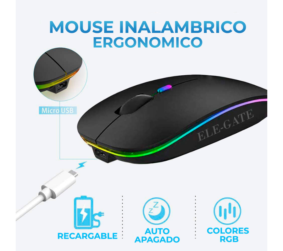 Recargable Ratón Inalámbrico Rgb Color 2.4GHZ Mouse Silencio