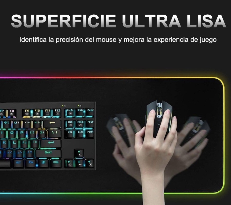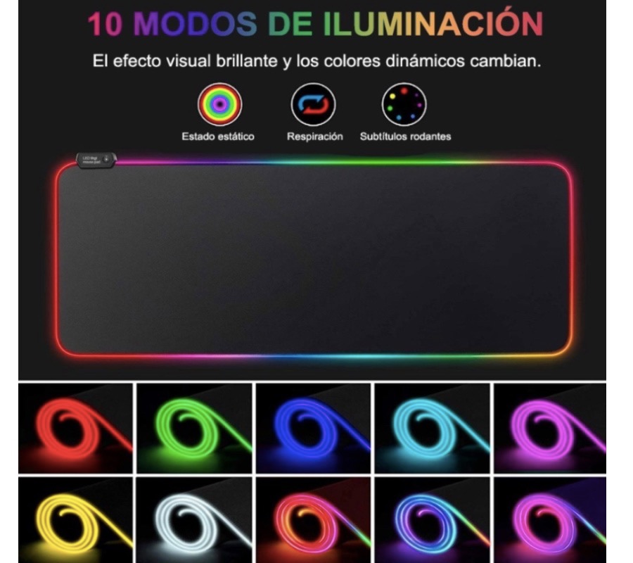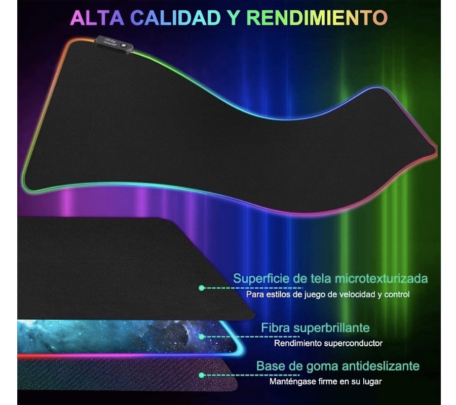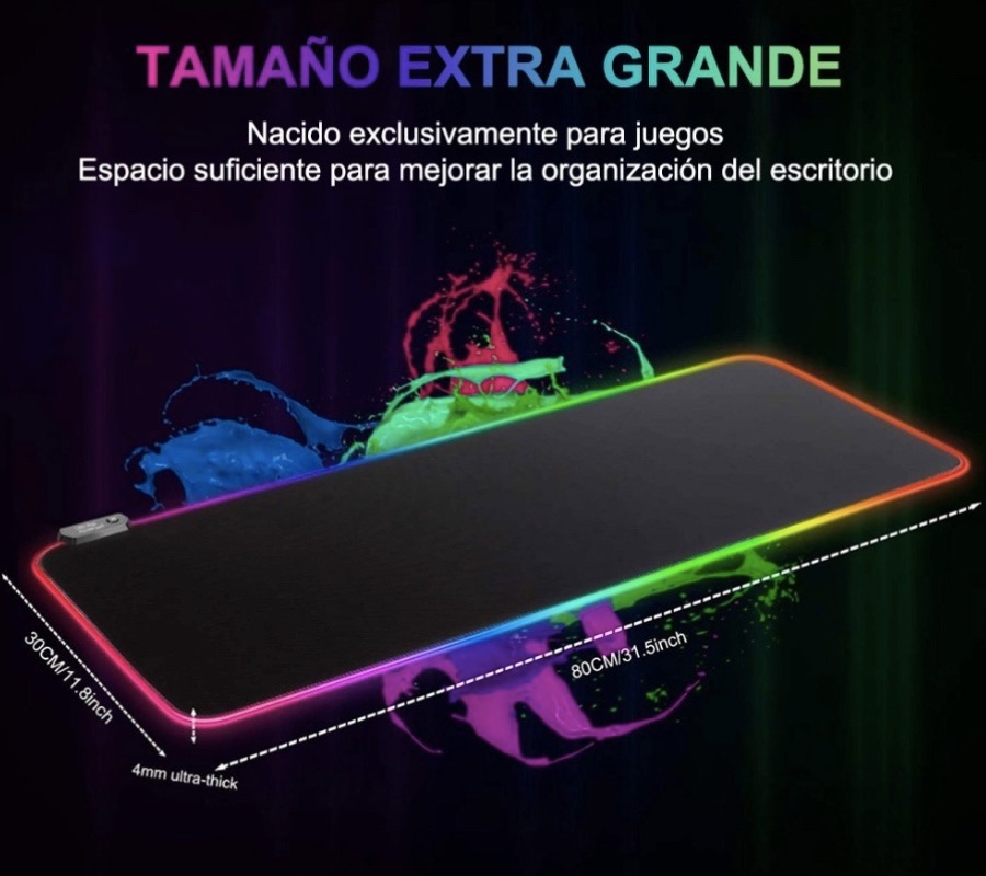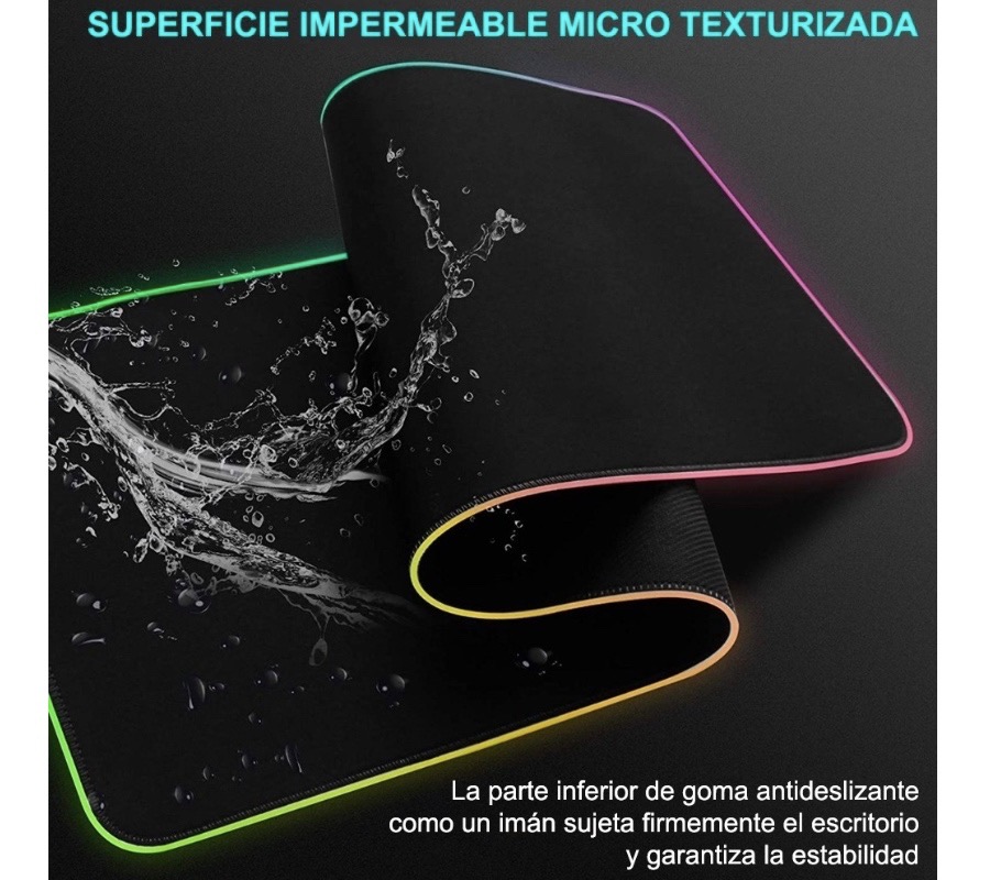 Mouse Pad Tapete para Mouse Pro Gaming Series GEN LED-01, RGB 7 Colores, USB Waterproof, 780x300mm, Negro