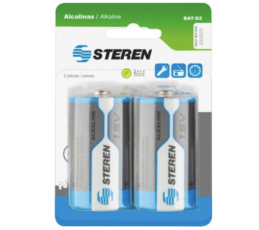 Pila Alcalina D STEREN BAT-D2 1.5V, 2pz.