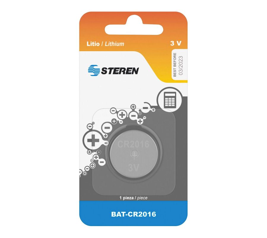 Pila de litio STEREN CR2016 P/Reloj, Control y Calculadora