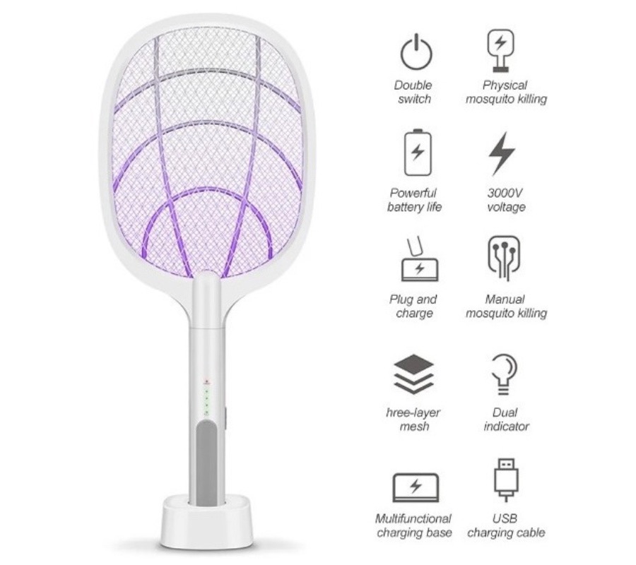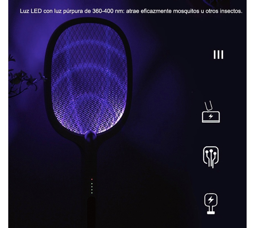 Raqueta Mata Mosquitos Lámpara Led Recargable Electrica