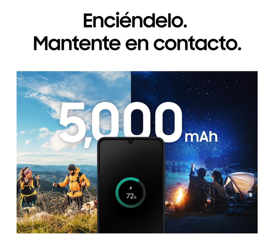 En el apartado fotográfico, el Galaxy A06 presenta una cámara trasera doble con una resolución principal de 50 MP y una segunda cámara de 2 MP, además de un flash.