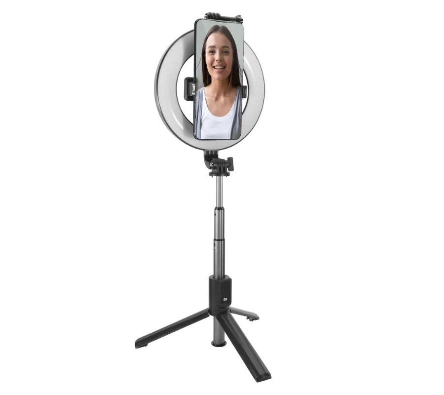 Selfie Bluetooth Con Aro De Luz Led Mobo Stand Glow Negro