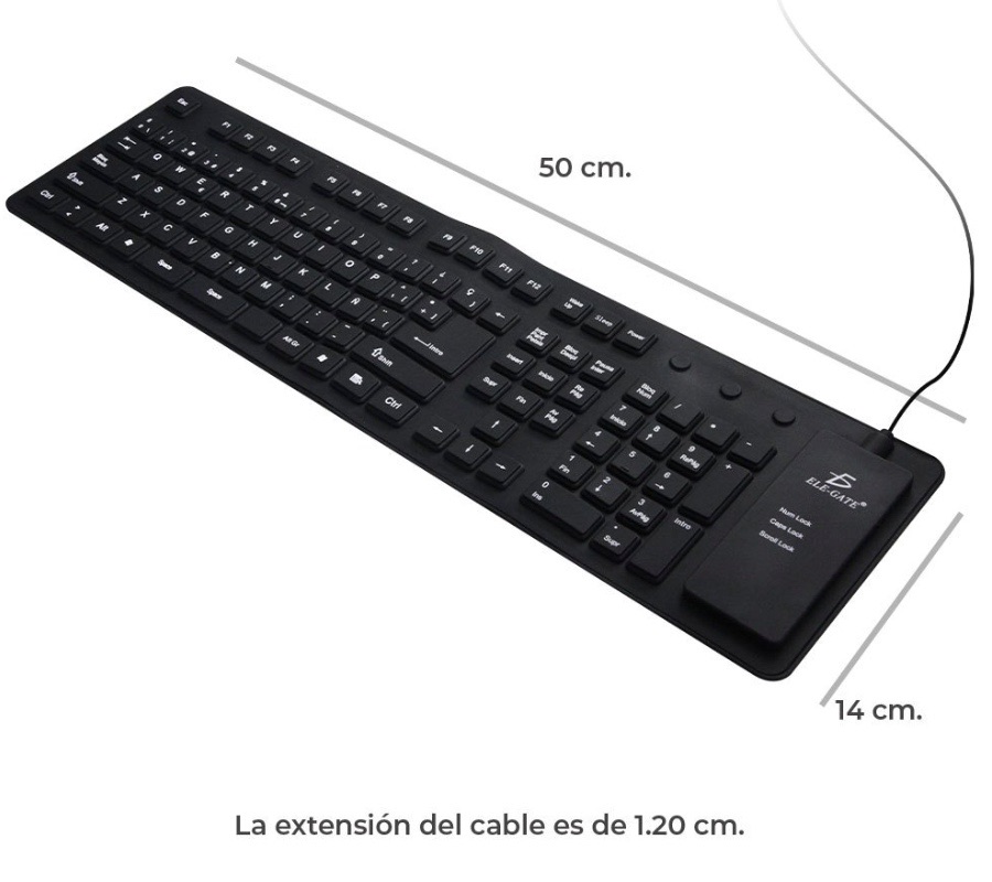 Teclado Alámbrico Flexible USB ELE-GATE WIN MAC OS - Antiderrames, Negro