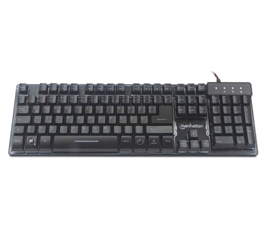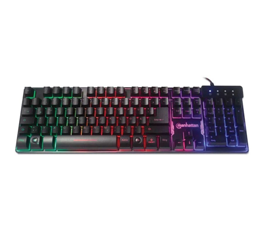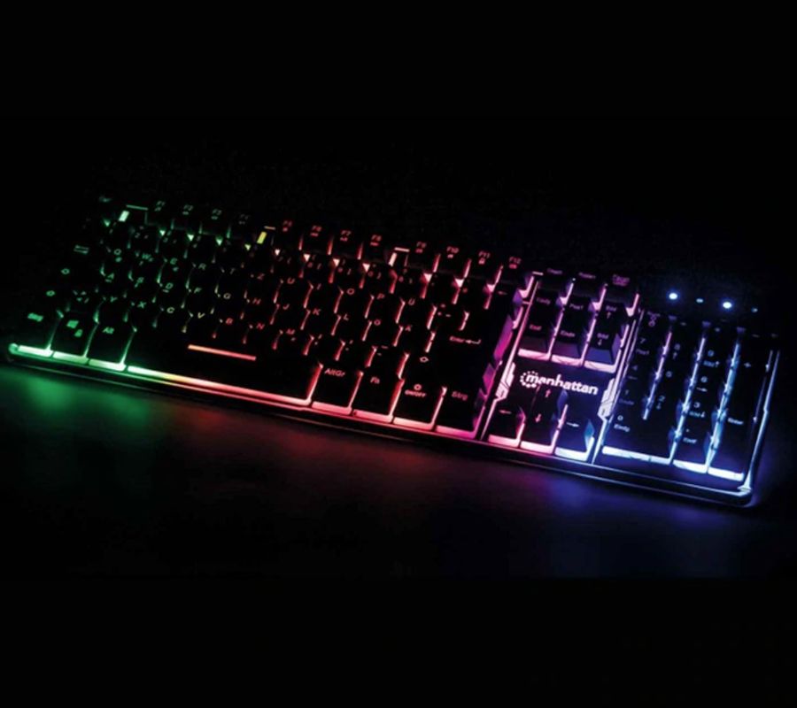Teclado Gaming USB MANHATTAN 178457 Base de Metal C/Luz, Negro