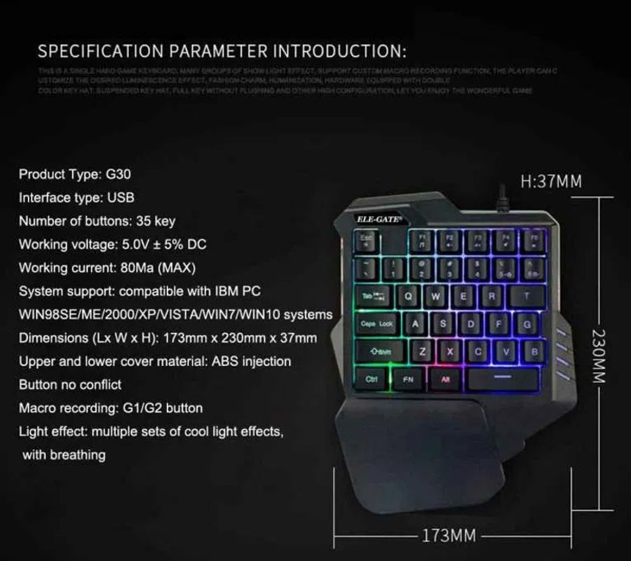 Teclado Gammer ELE-GATE TC.16 Iluminado Negro