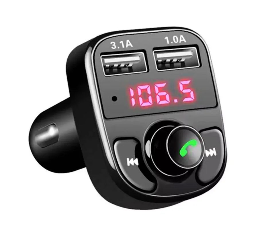 Conecta fácilmente tu smartphone o memorias USB inalambricamente a tu autoestereo con este excelente Transmisor FM y 2 conectores USB.