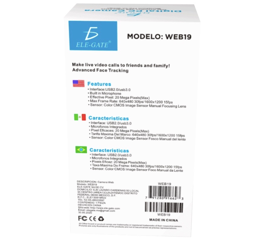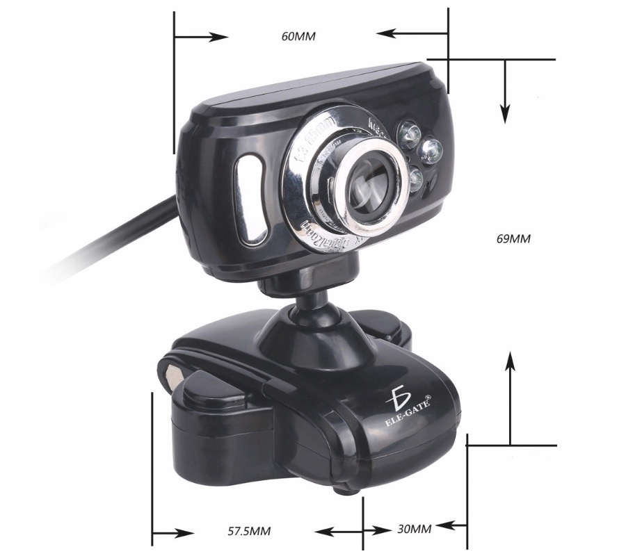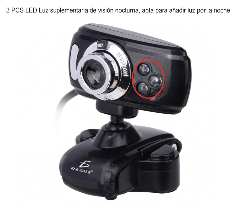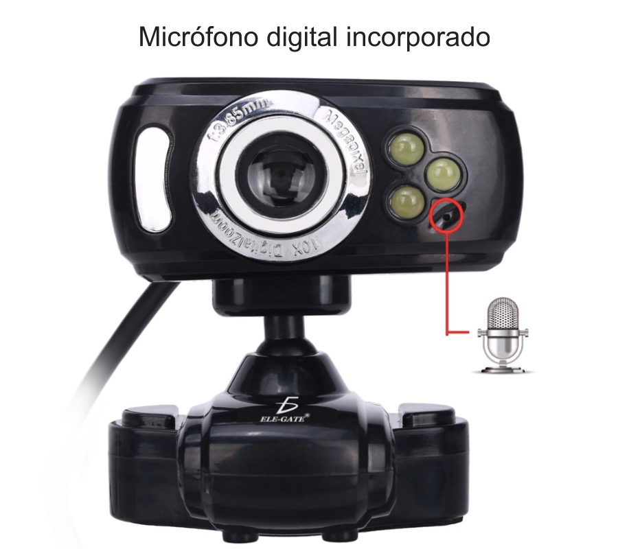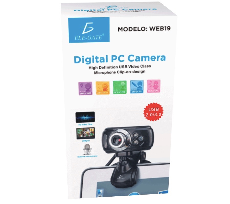 Web Cam Digital PC Camera ELE-GATE WEB.19, USB 2.0/3.0, 640X480, con Mic, Negro